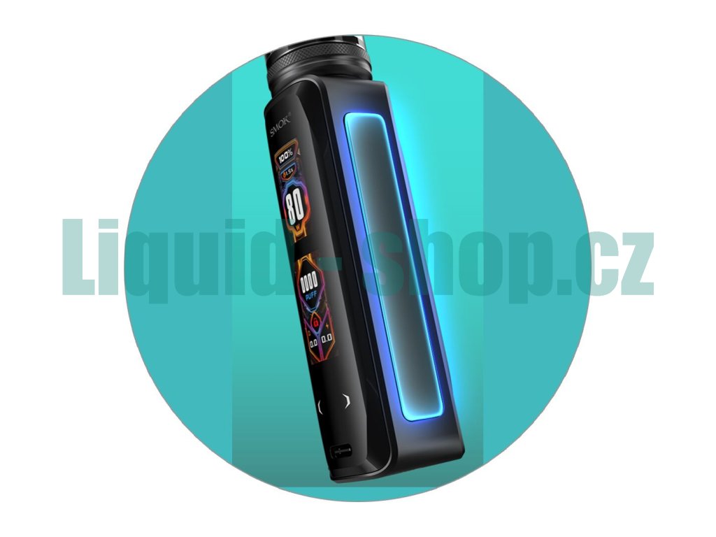 Přední část modu zdobí překrásný panel se dvěma samostatnými displeji. Díky tomuto specifickému rozložení je naplno využita celá přední plocha a mod působí futuristickým dojmem. Zároveň vám neunikne jakákoliv informace. Horní displej vám zobrazuje stav baterie, nastavený výkon a délku posledního potahu. Spodní displej zase neustále informuje o celkovém počtu potahů, odporu připojené žhavící hlavy a výstupním napětí z baterie. Během potahu navíc zobrazuje stylovou animaci. Pro plné využití potenciálu duálního displeje je mod vybaven hned třemi barevnými schématy, jeho celkový vzhled si tak můžete snadno a jednoduše upravit přímo v nastavení.