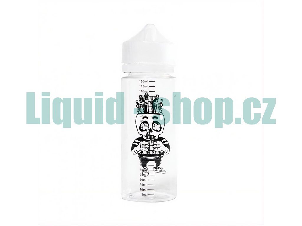 Plnící lahvička s ryskou Open Skull 120ml s uzávěrem pro DIY míchání e-liquidů. Transparentní PE materiál s přesnými ml značkami, odnímatelná pipeta zabraňující úniku. Ideální pro přípravu vlastních e-liquidů s profesionální přesností.