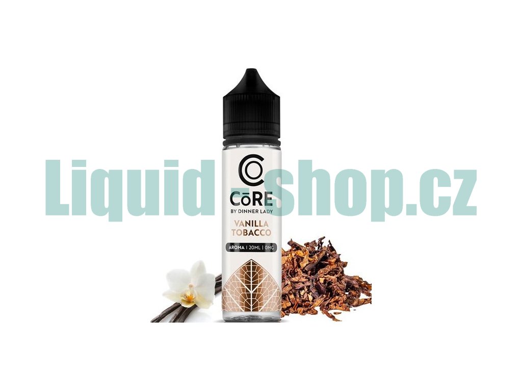 Perfektní kombinace vanilky a tabáku... Oblíbená značka Dinner Lady přichází na trh se zbrusu novou řadou prvotřídních příchutí Core ve formě Shake and Vape. Balení obsahuje 20ml příchutě v 60ml lahvičce. Uživatel tak pouze přidá bázi do lahvičky, zatřese s ní a má hotový e-liquid.... Jedná se o koncentrát, který se kape do báze. ...nejedná se o hotový liquid.