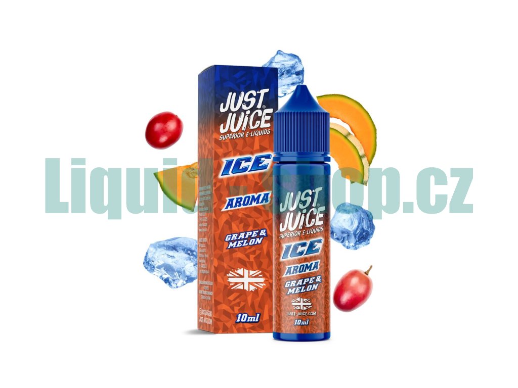Příchuť Just Juice S&V: ICE Grape & Melon (Ledové hroznové víno & cukrový meloun) objem 10ml tabáková nálepka Kolek Q