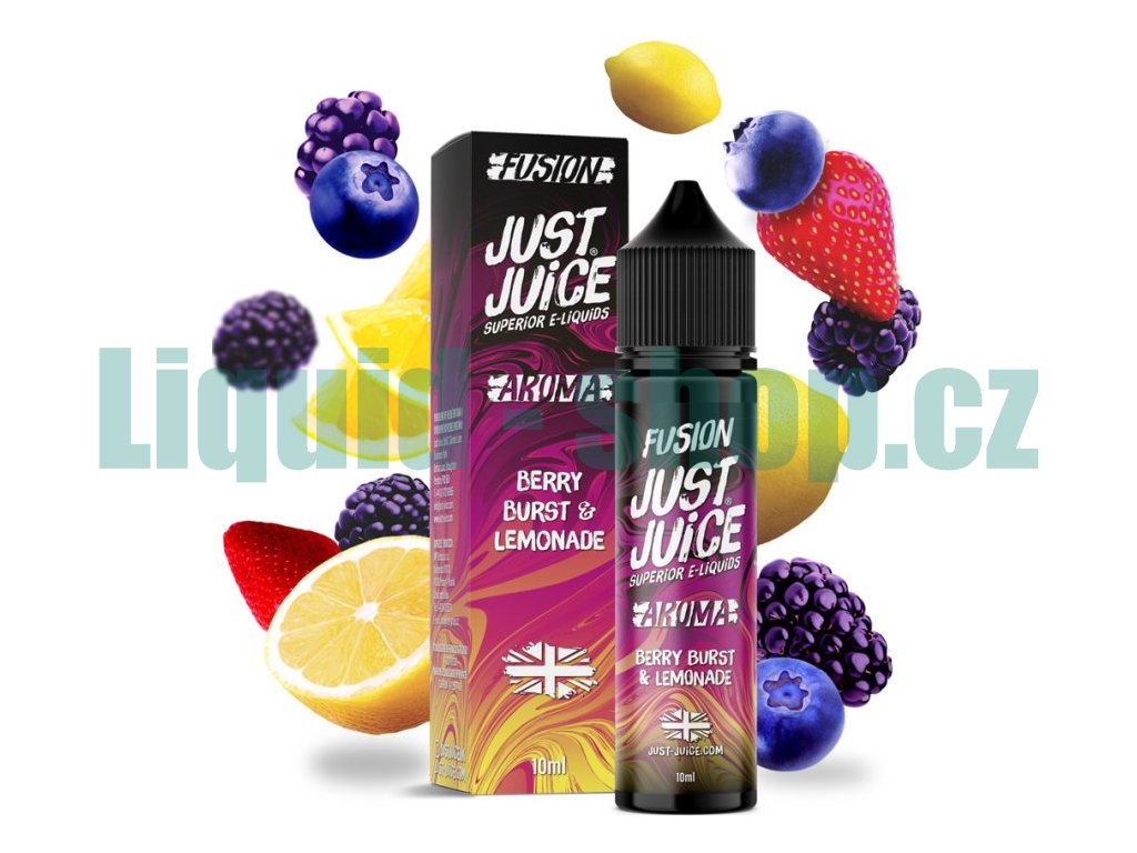 Dvě oblíbené příchutě v jednom okouzlujícím mixu. Příchuť Fusion Berry Burst & Lemonade tak propojuje sladkost a jemnost lesních bobulí s nakyslostí a svěžestí citronu a osvěžující citronády....  Britské příchutě Just Juice jsou velice oblíbené a vyhledávané po celé Evropě. Jsou dodávány v 60ml lahvičkách, které obsahují 10ml koncentrátu. Uživatel tak pouze přidá bázi do lahvičky, zatřese s ní a má hotový e-liquid....  Jedná se o koncentrát, který se kape do báze. ...nejedná se o hotový liquid