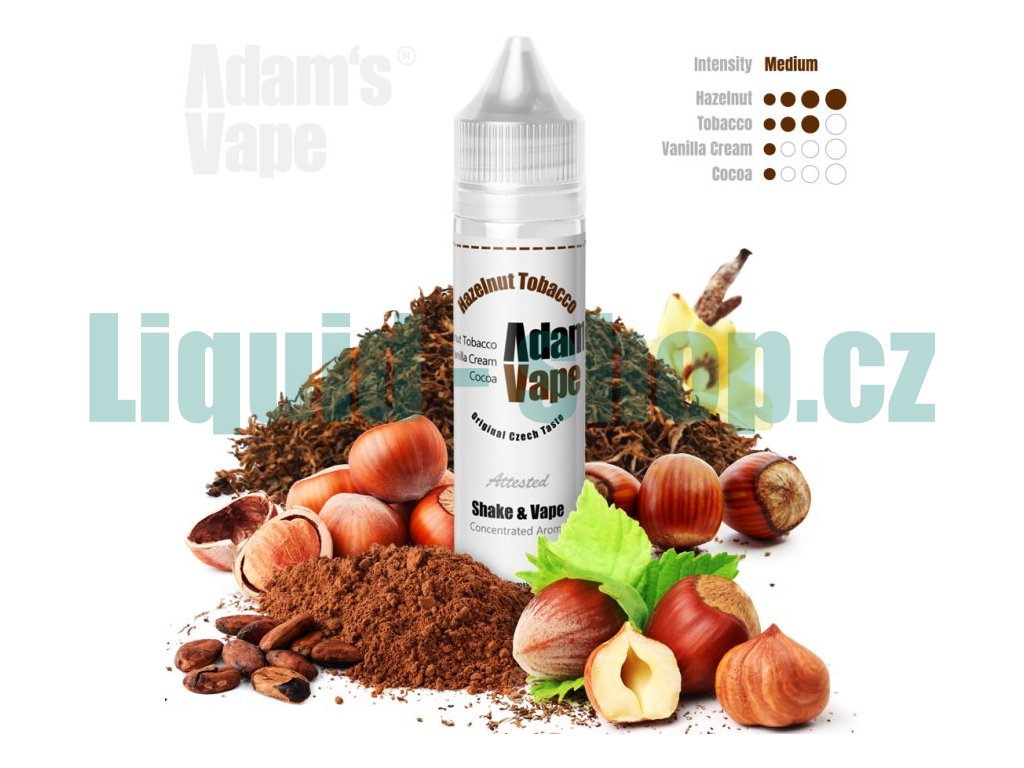 Jemný tabák s lískovým oříškem a vanilkou... Vyladěné příchutě od českého výrobce Adam´s Vape. Příchutě jsou dodávány v 60ml plastových lahvičkách, které obsahují 12ml koncentrátu. Uživatel tak pouze přidá bázi do lahvičky, zatřese s ní a má hotový e-liquid.... Jedná se o koncentrát, který se kape do báze. Výroba probíhá za nejpřísnějších hygienických standardů ve farmaceutické laboratoři....nejedná se o hotový liquid.